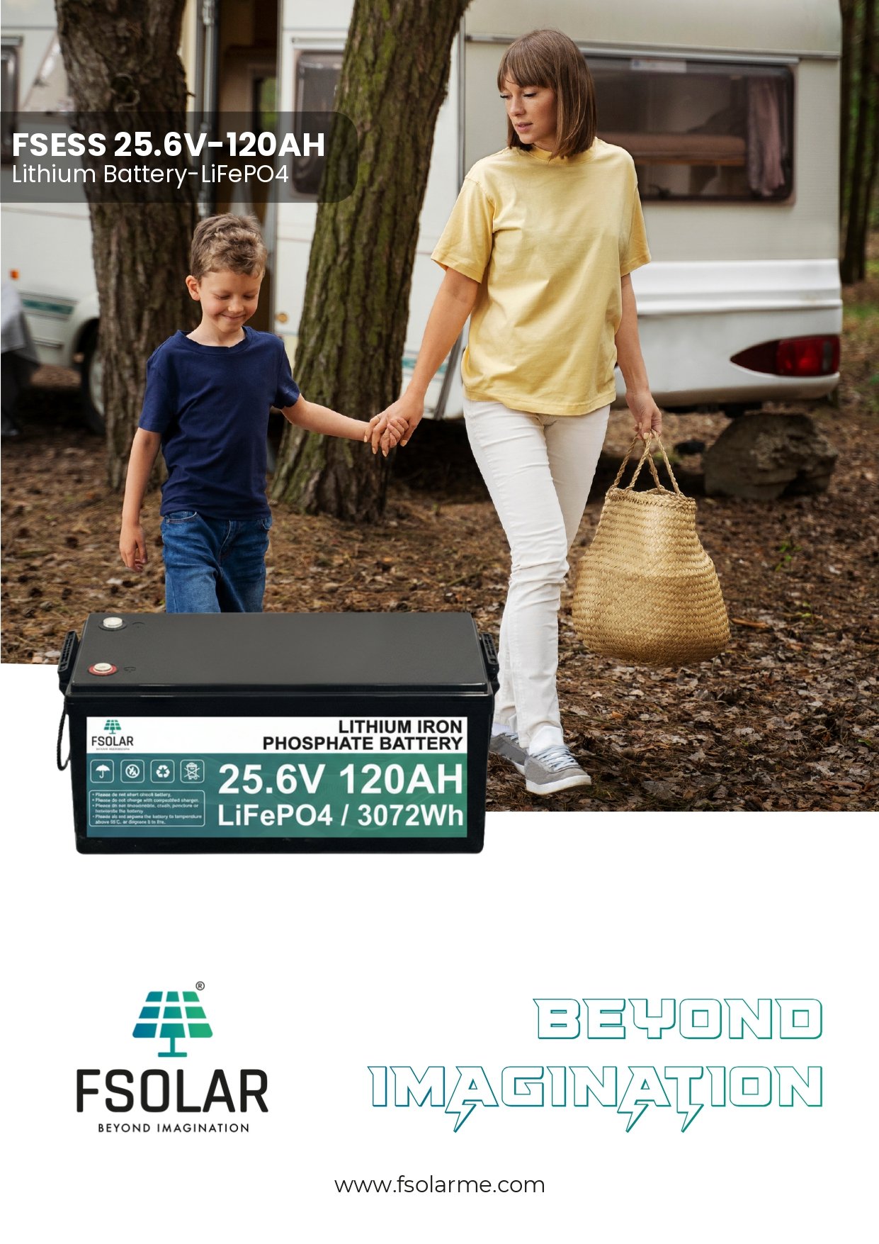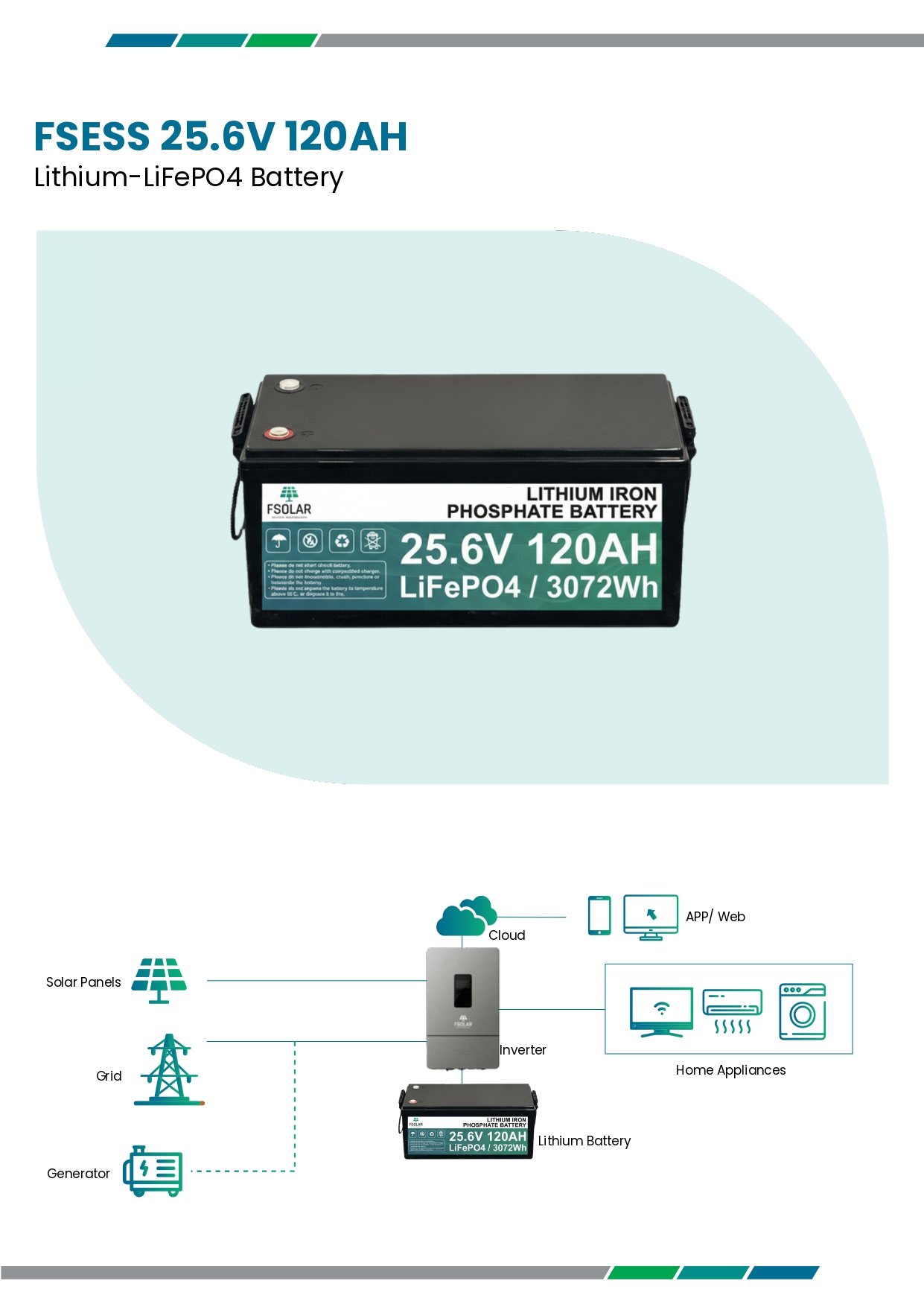 Fsolar Lithium Battery 120AH 25.6V LiFePO4